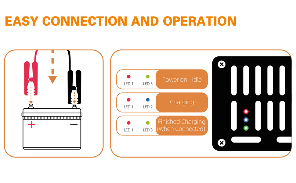 Say goodbye to average chargers, as our smart charger is tailor-made for 12V LiFePO4 batteries. Its cutting-edge design allows current to flow into batteries from as low as 0V, activating all types of Battery Management Systems (BMS) effortlessly. With an Input of AC110V and an Output of 14.6V 20A, be prepared to witness unparalleled charging efficiency.