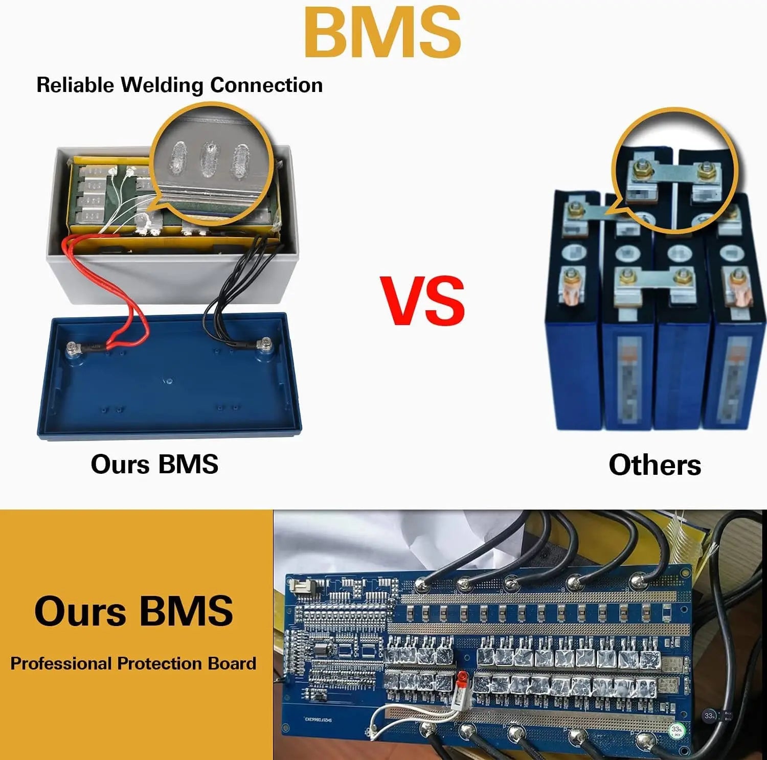 Embrace the convenience of an Automatic Battery Management System (BMS) that shields your battery from Over Charge, Discharge, Over Current, and Short-Circuiting. Low and High-Temperature protection ensures peak performance and prolonged life for your battery. Experience seamless power management as the BMS automatically cuts off the battery, with reactivation requiring just 1 second without the need for higher voltage input.