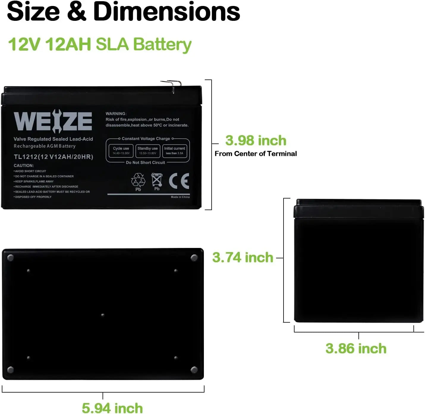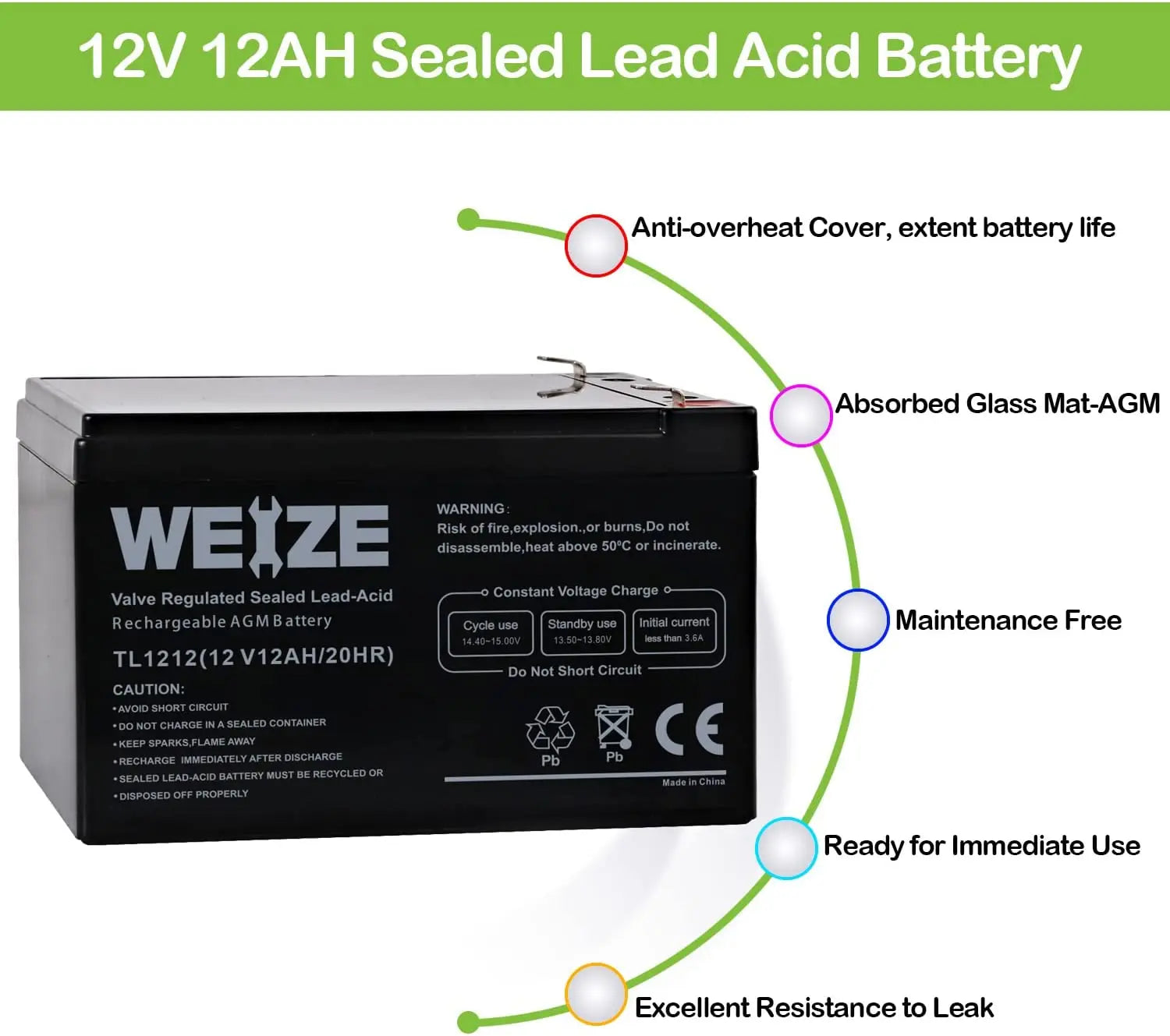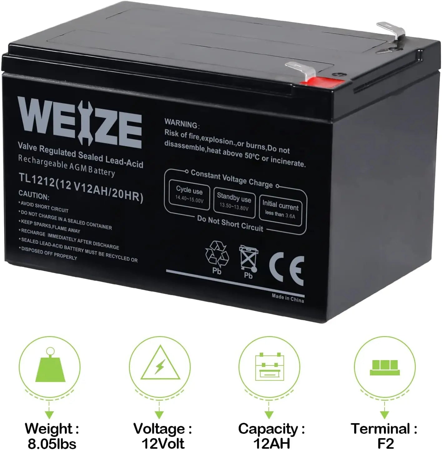 WEIZE 12V 12Ah SLA Deep Cycle AGM Battery