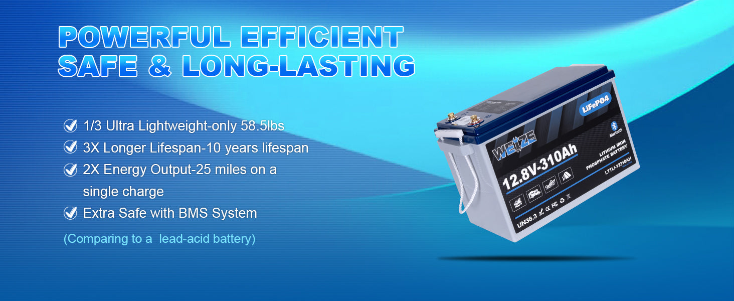 [{"id":435698368740,"handle":"12v-lifepo4-series","updated_at":"2026-02-03T16:48:49-08:00","published_at":"2024-05-09T02:11:00-07:00","sort_order":"manual","template_suffix":"","published_scope":"web","title":"12V LiFePO4 Lithium Battery Series","body_html":"\u003cp\u003eWEIZE \u003ca title=\"LiFePO4 Battery\" href=\"https:\/\/www.weizeus.com\/collections\/weize-lifepo4-battery-lithium-phosphate-li-fe-po4-cells\"\u003eLithium Iron Phosphate (LiFePO4) batteries\u003c\/a\u003e are designed to deliver unparalleled performance, safety, and efficiency for a wide range of applications. Whether you're powering an RV, boat, solar energy system, or other demanding devices, our \u003ca title=\"12V LiFePO4 Series\" href=\"https:\/\/www.weizeus.com\/collections\/12v-lifepo4-series\"\u003e12V LiFePO4 Series\u003c\/a\u003e provides exceptional power density, long cycle life, and lightweight convenience. Engineered for maximum reliability, these batteries offer superior thermal and chemical stability, ensuring safe operation even under the most extreme conditions. Experience the next level of energy storage with our 12V LiFePO4 Series and enjoy the benefits of cutting-edge technology and sustainable power solutions.\u003c\/p\u003e\n\u003ch2\u003eWhy Choose WEIZE LiFePO4 Lithium Battery?\u003c\/h2\u003e\n\u003cp\u003e\u003cbr\u003e\u003c\/p\u003e\n\u003cp\u003e🟠 WEIZE LiFePO4 batteries can last up to 10 times longer than traditional lead-acid batteries, with a lifespan of over 8,000 charge cycles, making them a cost-effective investment over time.\u003cbr\u003e🟠 LiFePO4 chemistry is inherently safer than other lithium-ion battery types, as it is less prone to overheating, thermal runaway, or combustion. This makes them ideal for applications where safety is a priority.\u003cbr\u003e🟠 These batteries are significantly lighter and more compact than lead-acid batteries, reducing the overall weight of your setup, which is particularly beneficial for mobile applications like RVs, boats, and electric vehicles.\u003cbr\u003e🟠 WEIZE LiFePO4 batteries provide stable voltage throughout the discharge cycle, ensuring that your devices receive consistent power until the battery is nearly depleted. LiFePO4 batteries can be charged at higher currents, allowing for faster charging times compared to traditional batteries, which is especially useful in off-grid and emergency power situations.\u003cbr\u003e🟠 LiFePO4 batteries are non-toxic and contain no heavy metals, making them a more environmentally friendly option. They are also fully recyclable.\u003cbr\u003e🟠 These batteries perform well across a wide range of temperatures, making them suitable for use in various climates and conditions.\u003cbr\u003e🟠 WEIZE LiFePO4 batteries have a low self-discharge rate, allowing them to retain their charge for longer periods when not in use, making them ideal for backup power solutions. With a high energy efficiency rate, these batteries maximize the energy you get out of each charge, reducing waste and improving overall performance.\u003c\/p\u003e\n\u003ch2\u003eShop By Application\u003c\/h2\u003e\n\u003cp\u003e\u003cbr\u003e\u003c\/p\u003e\n\u003cp\u003e🔸 \u003ca title=\"Car \u0026amp; Truck Battery\" href=\"https:\/\/www.weizeus.com\/collections\/platinum-auto-battery\"\u003eCar \u0026amp; Truck Battery\u003c\/a\u003e🔸 \u003ca title=\"Lawn Tractor and Mower Battery\" href=\"https:\/\/www.weizeus.com\/collections\/lawn-tractor-mower-battery\"\u003eLawn Tractor \u0026amp; Mower Battery\u003c\/a\u003e🔸 \u003ca title=\"Golf Cart Batteries\" href=\"https:\/\/www.weizeus.com\/collections\/golf-cart-batteries\"\u003eGolf Cart Batteries\u003c\/a\u003e🔸 \u003ca title=\"Marine and Boat Battery\" href=\"https:\/\/www.weizeus.com\/collections\/marine-and-boat-battery\"\u003eMarine \u0026amp; Boat Battery\u003c\/a\u003e\u003c\/p\u003e\n\u003cp\u003e🔸 \u003ca title=\"ATV \u0026amp; Motorcycle Battery\" href=\"https:\/\/www.weizeus.com\/collections\/motorcycle-battery\"\u003eATV \u0026amp; Motorcycle Battery\u003c\/a\u003e🔸 \u003ca title=\"Camper and RV Battery\" href=\"https:\/\/www.weizeus.com\/collections\/camper-and-rv-battery\"\u003eCamper \u0026amp; RV Battery\u003c\/a\u003e🔸 \u003ca title=\"Scooter Battery\" href=\"https:\/\/www.weizeus.com\/collections\/scooter-battery\"\u003eScooter Battery\u003c\/a\u003e🔸 \u003ca title=\"Trolling Motor Battery\" href=\"https:\/\/www.weizeus.com\/collections\/trolling-motor-battery\"\u003eTrolling Motor Battery\u003c\/a\u003e\u003c\/p\u003e","image":{"created_at":"2024-05-09T02:50:30-07:00","alt":"12V LiFePO4 Series - WEIZE","width":600,"height":600,"src":"\/\/www.weizeus.com\/cdn\/shop\/collections\/1_aa755da4-4a21-4cc4-9774-2725bafe7809.png?v=1724309427"}},{"id":412262957284,"handle":"best-sellers","updated_at":"2026-02-03T04:19:36-08:00","published_at":"2022-10-07T02:15:47-07:00","sort_order":"manual","template_suffix":"","published_scope":"web","title":"Best Sellers","body_html":"","image":{"created_at":"2023-07-26T00:28:28-07:00","alt":"BEST SELLERS - WEIZE","width":700,"height":700,"src":"\/\/www.weizeus.com\/cdn\/shop\/collections\/12v100ah.png?v=1724309538"}},{"id":457546662116,"handle":"bluetooth-lifepo4-lithium-batteries","updated_at":"2026-02-03T16:48:49-08:00","published_at":"2025-04-20T20:32:43-07:00","sort_order":"manual","template_suffix":"","published_scope":"web","title":"Bluetooth LiFePO4 Lithium Batteries","body_html":"\u003cp\u003ePower meets precision with WEIZE’s advanced LiFePO4 lithium batteries featuring built-in Bluetooth technology. Monitor real-time performance, state of charge, temperature, and more—right from your smartphone. Whether you're upgrading your RV, solar system, boat, or off-grid setup, these smart batteries deliver long-lasting, reliable energy with total visibility and control.\u003c\/p\u003e"},{"id":435118702820,"handle":"camper-and-rv-battery","updated_at":"2026-02-03T16:48:49-08:00","published_at":"2024-0