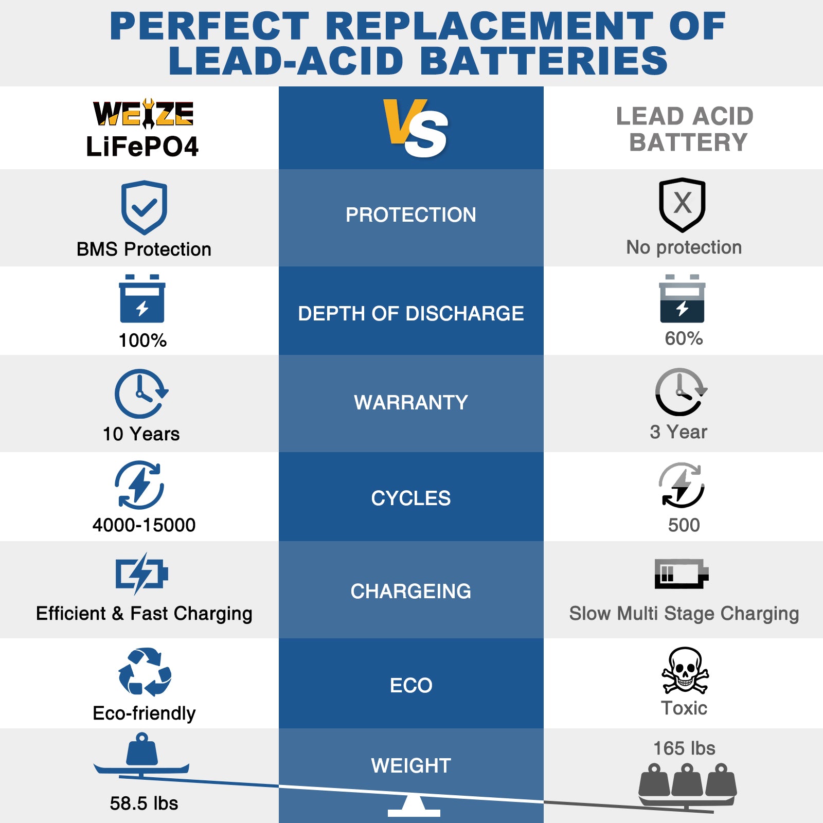 ✅ Trusted Service: WEIZE LiFePO4 batteries come with a 10-year guarantee. Our dedicated support team is ready to help—contact us directly for any battery-related assistance.