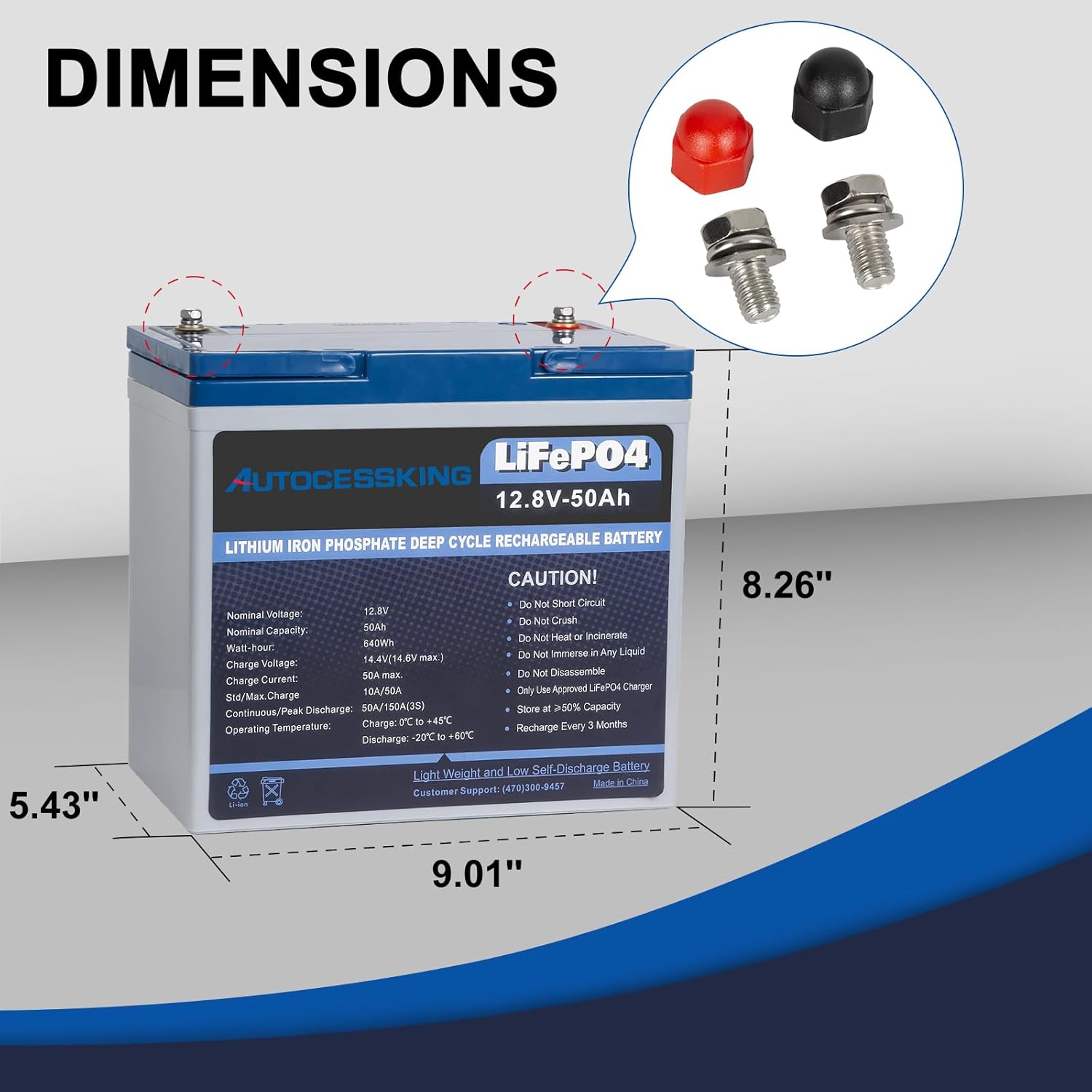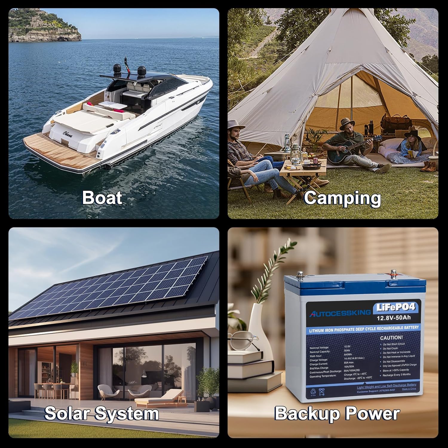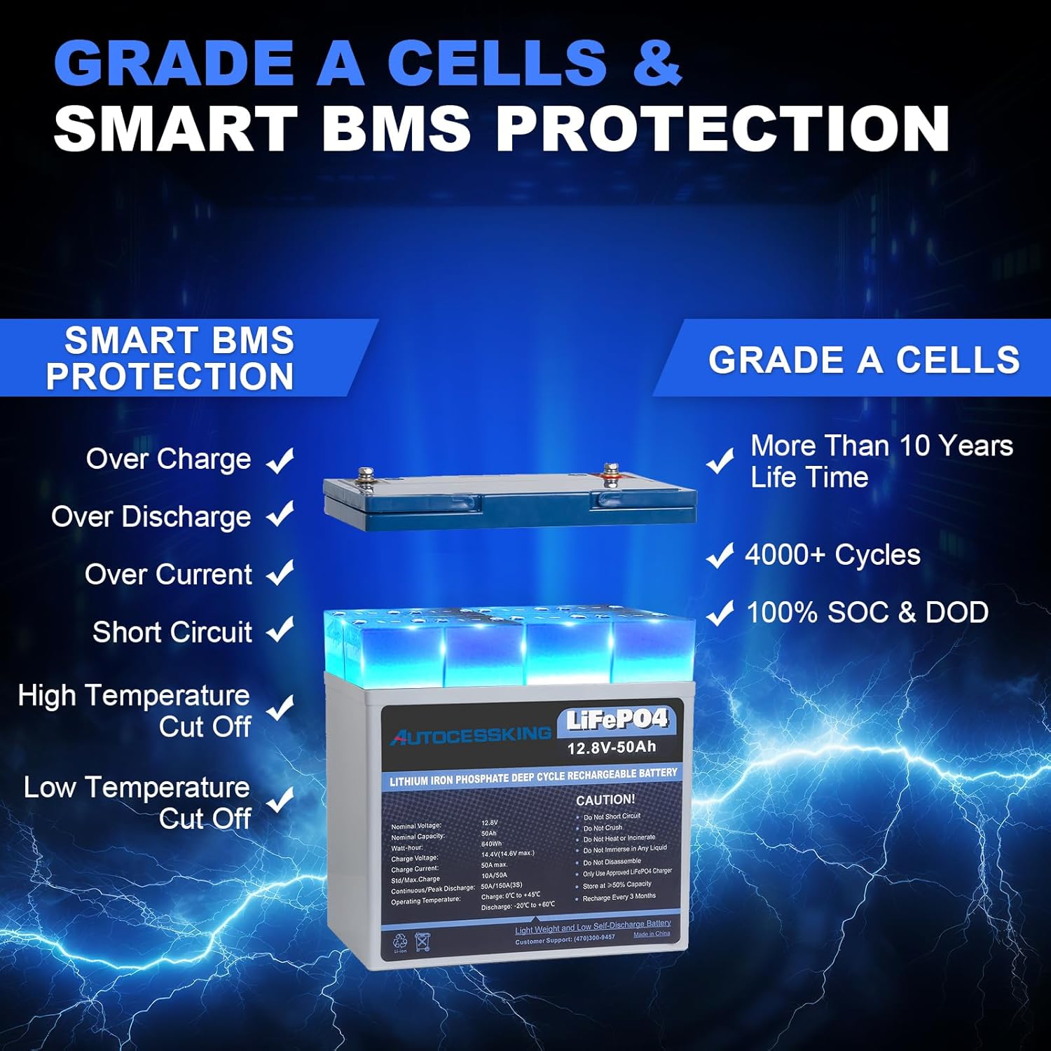 • Our 12V 50Ah LiFePO4 Batteries boast an impressive lifespan of over 2000 cycles at 100% capacity or a staggering 8000 cycles at 50% depth of discharge (as suggested).