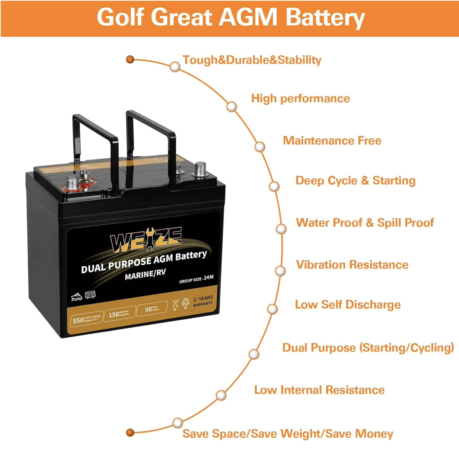 WEIZE BCI Group 24M 12V 90AH Dual Purpose AGM Battery