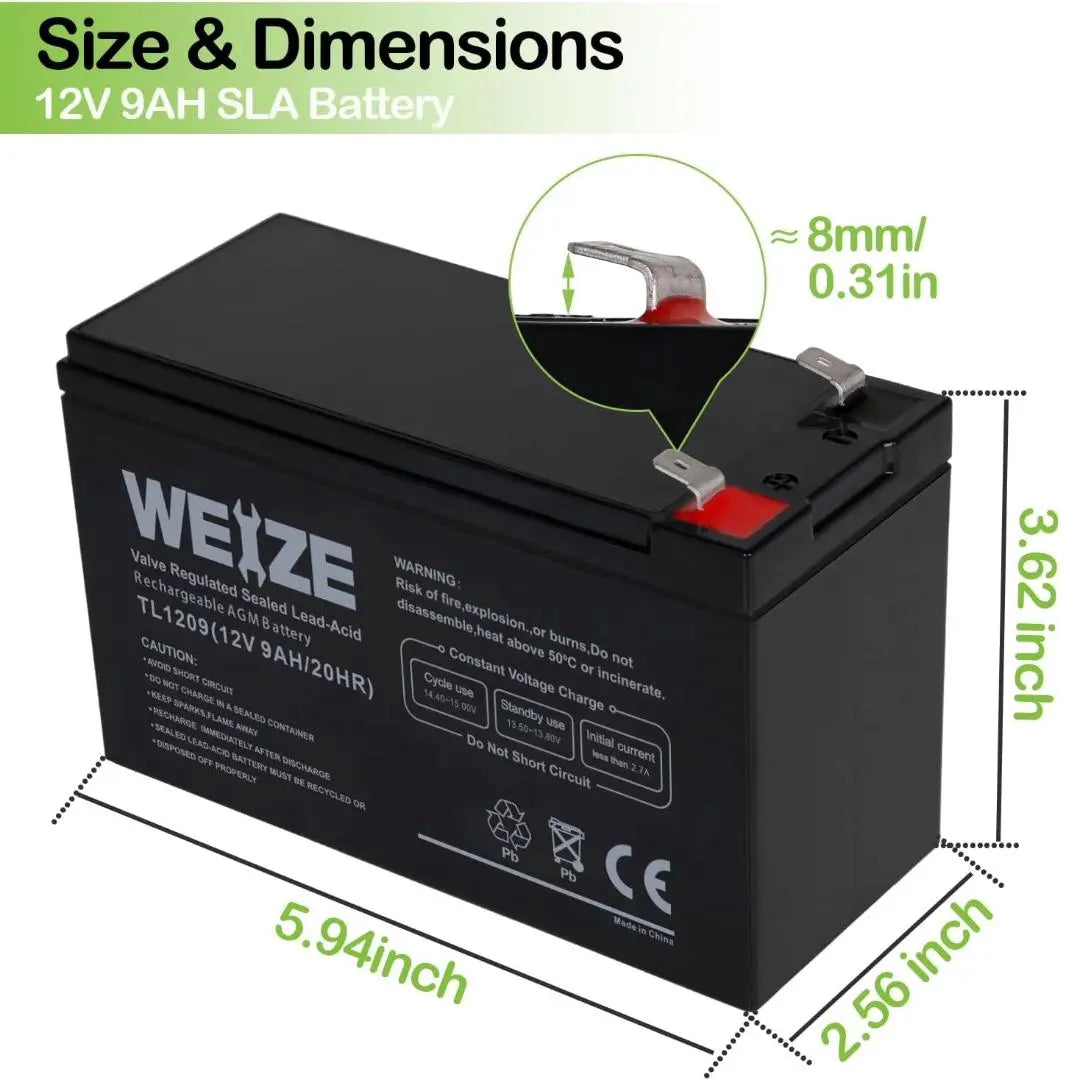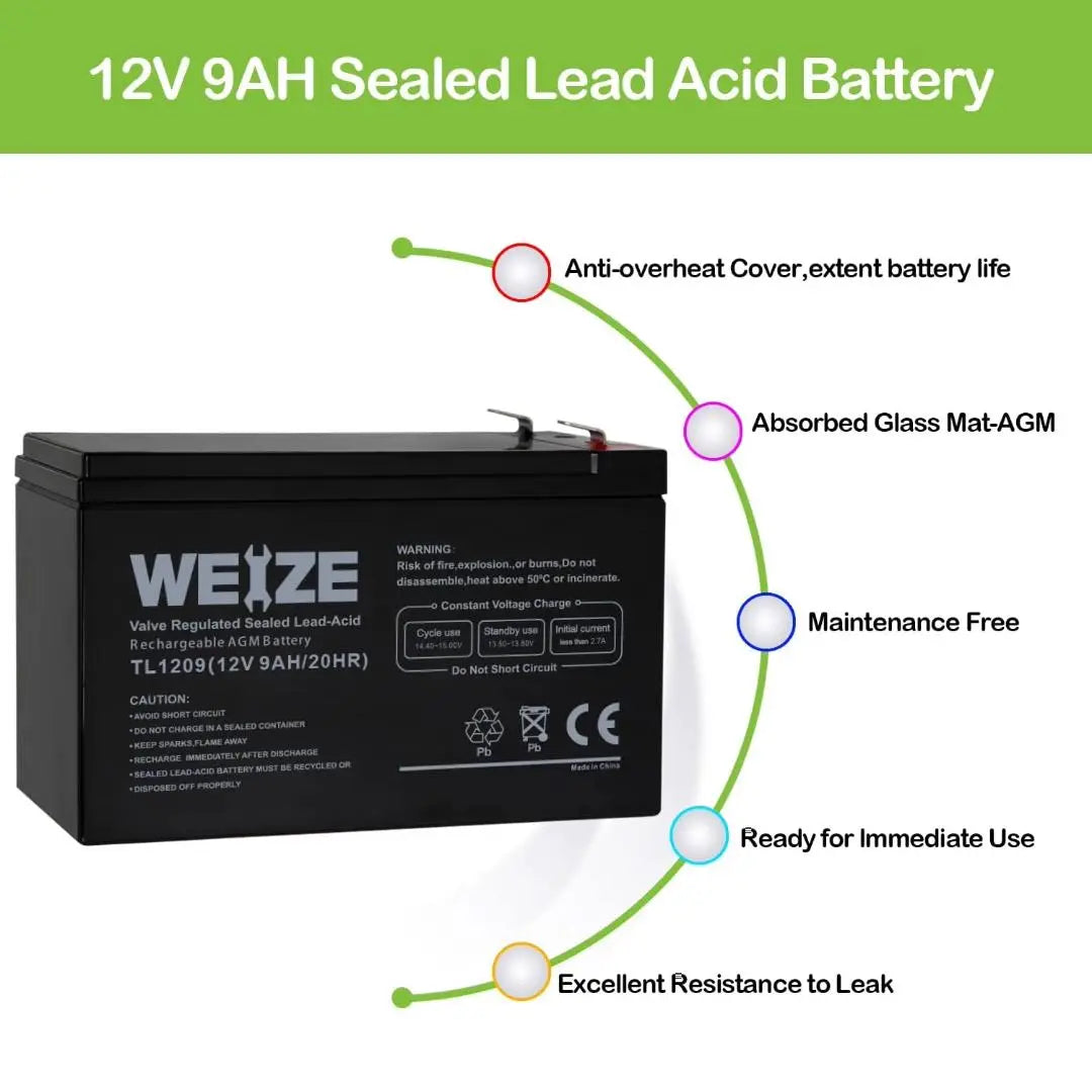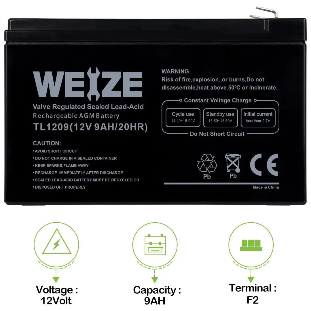 WEIZE 12V 9Ah Deep Cycle AGM Battery with F2 Terminals