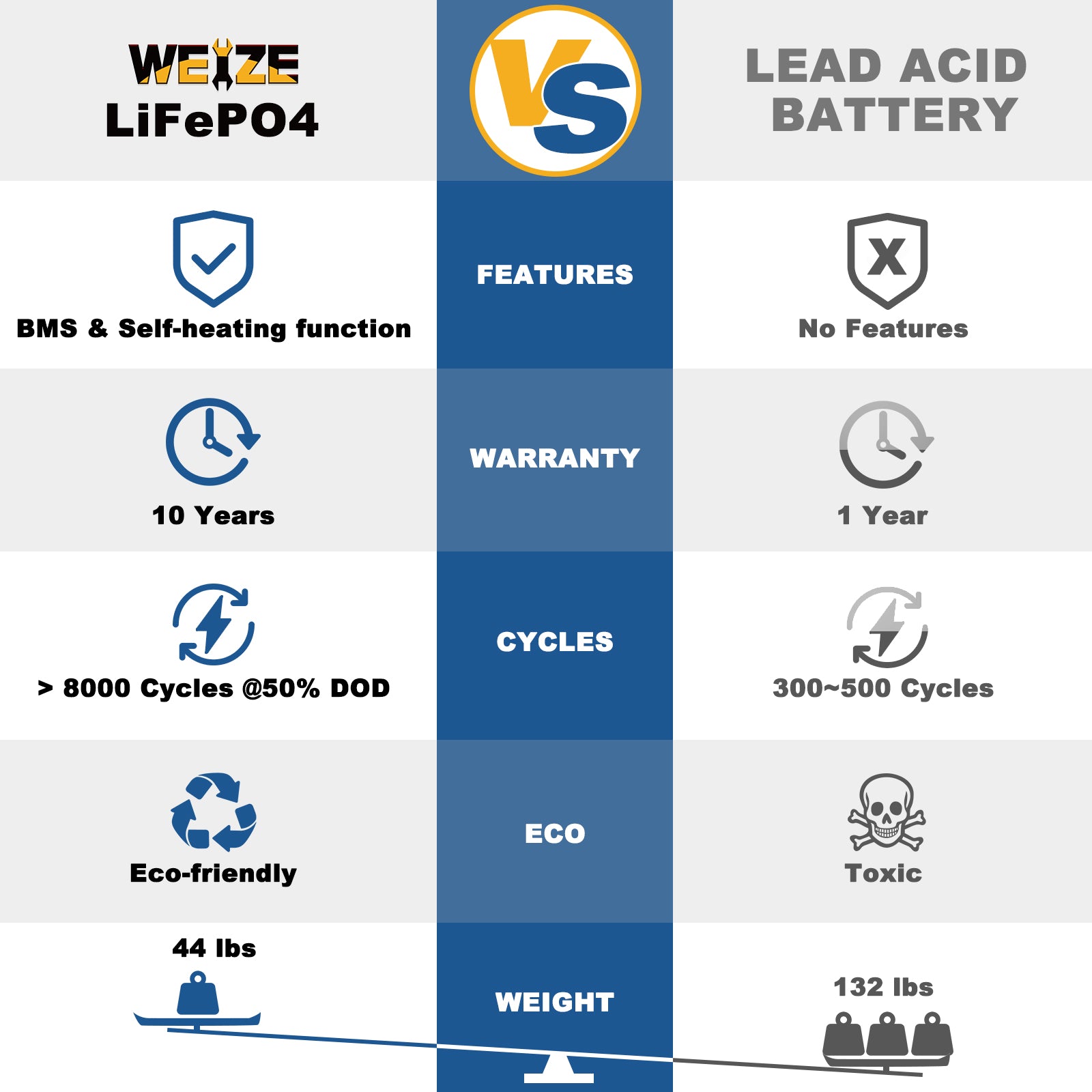 Experience the Power of Unmatched Reliability - Weize 10-Year Warranty on LiFePO4 Batteries!
