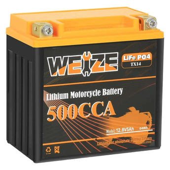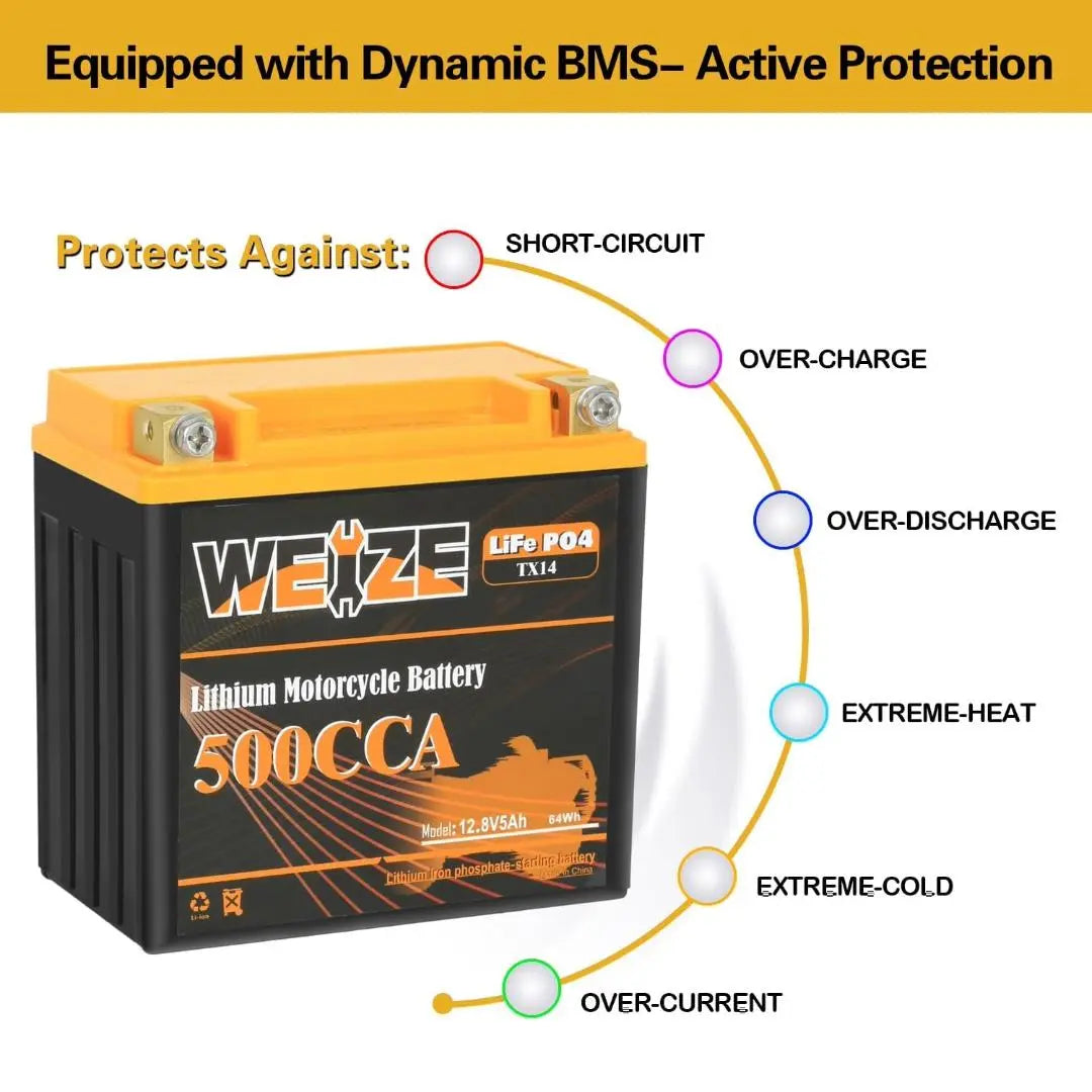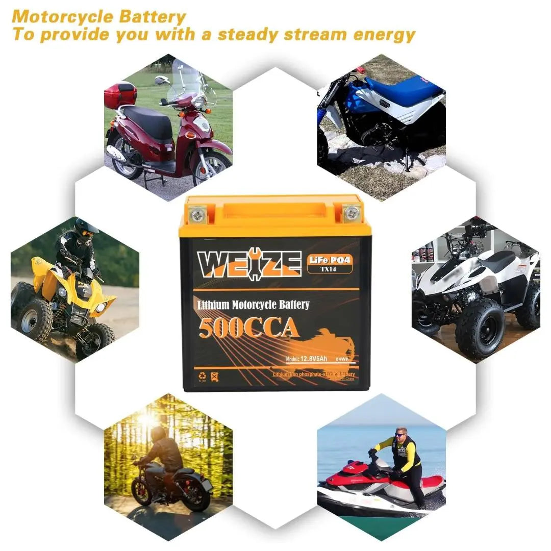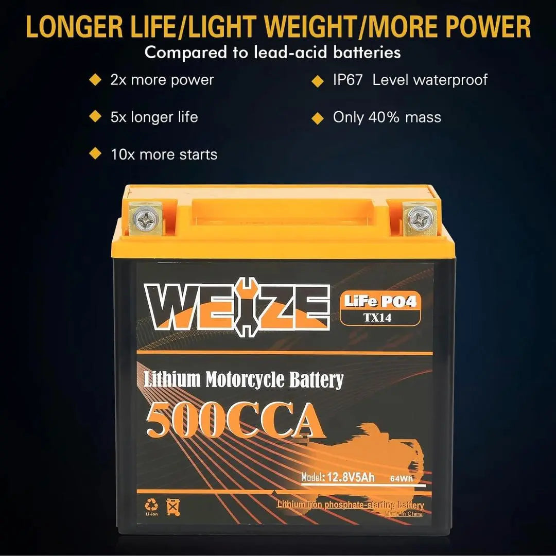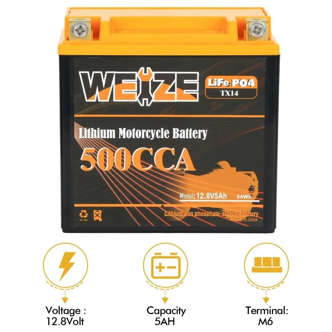 WEIZE 12V 5AH Lithium Group 14, 500CCA LiFePO4 Motorcycle Battery