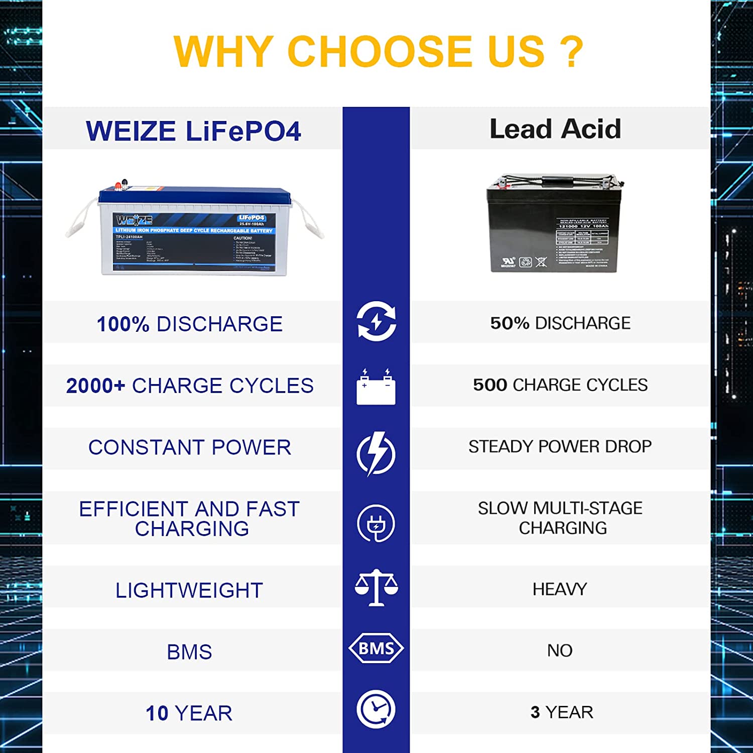 Powerful and Durable - Weize 24V LiFePO4 Battery with 10-Year Warranty!