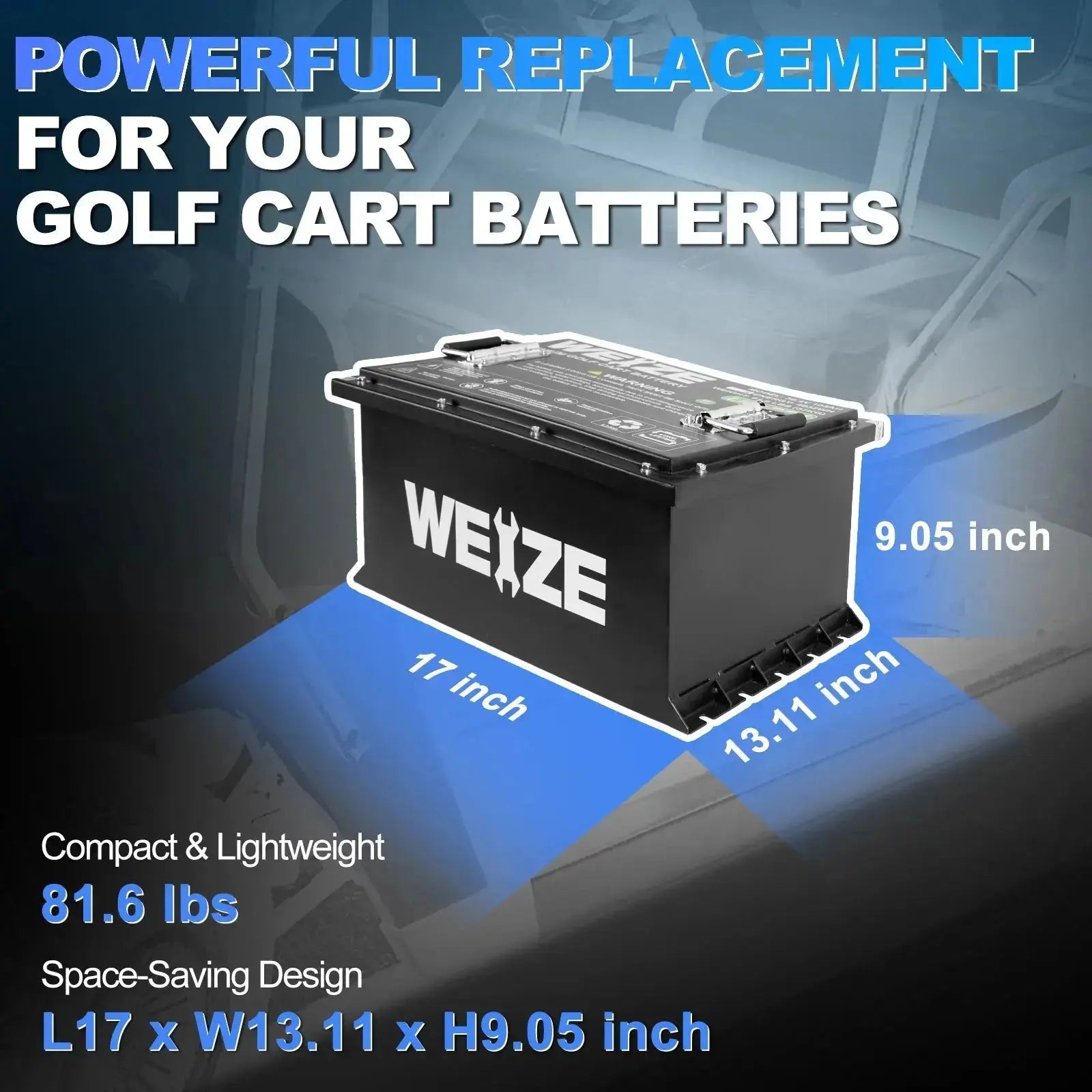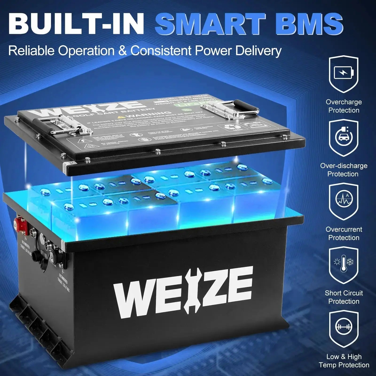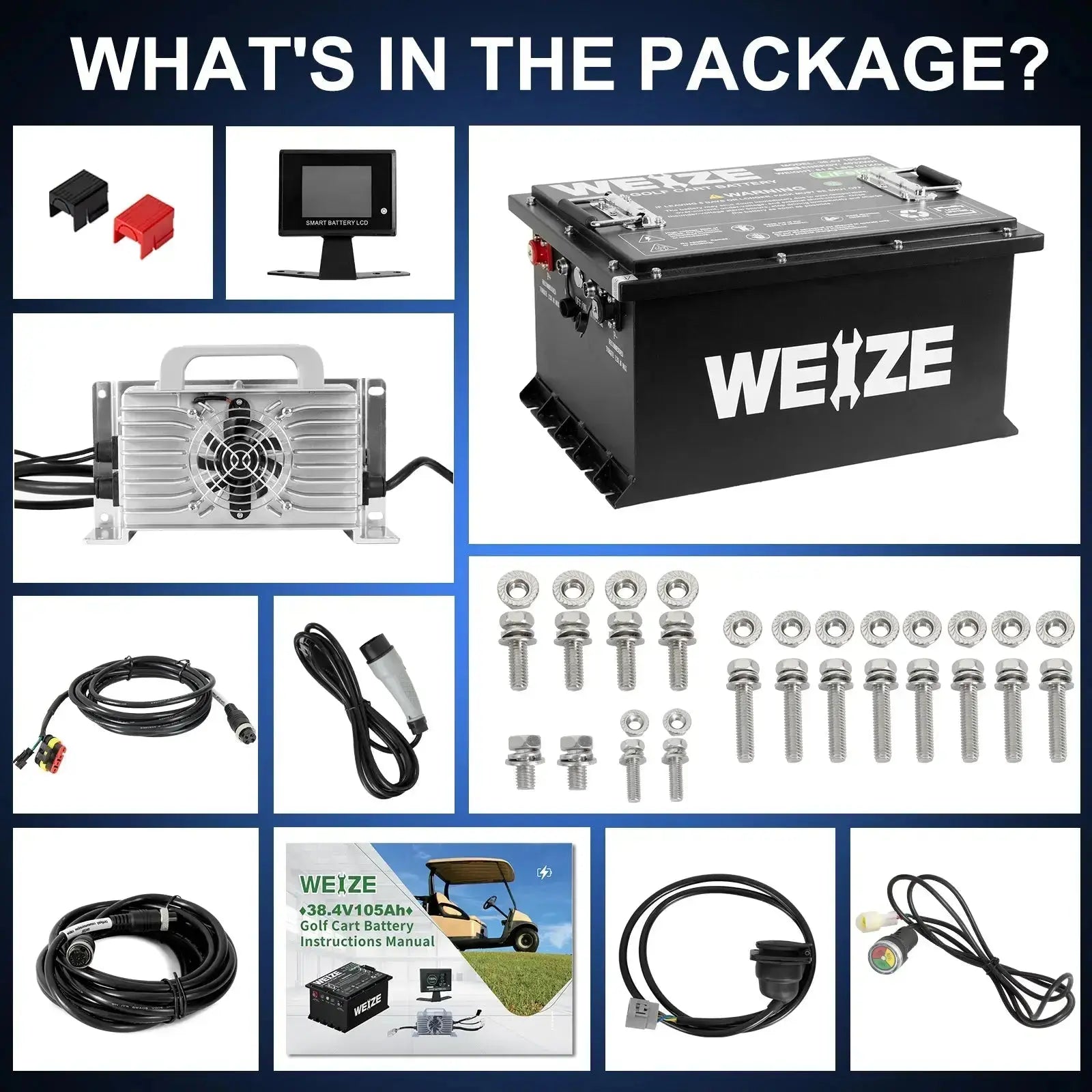 WEIZE 36V(38.4V) 105AH LiFePO4 Golf Cart Battery, 4032Wh Bluetooth Lithium Battery - Complete Kit