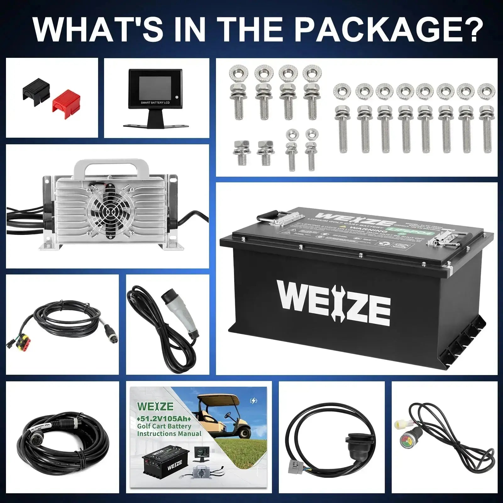WEIZE Premium 48V 105AH Bluetooth Lithium LiFePO4 Battery for E-Z-GO