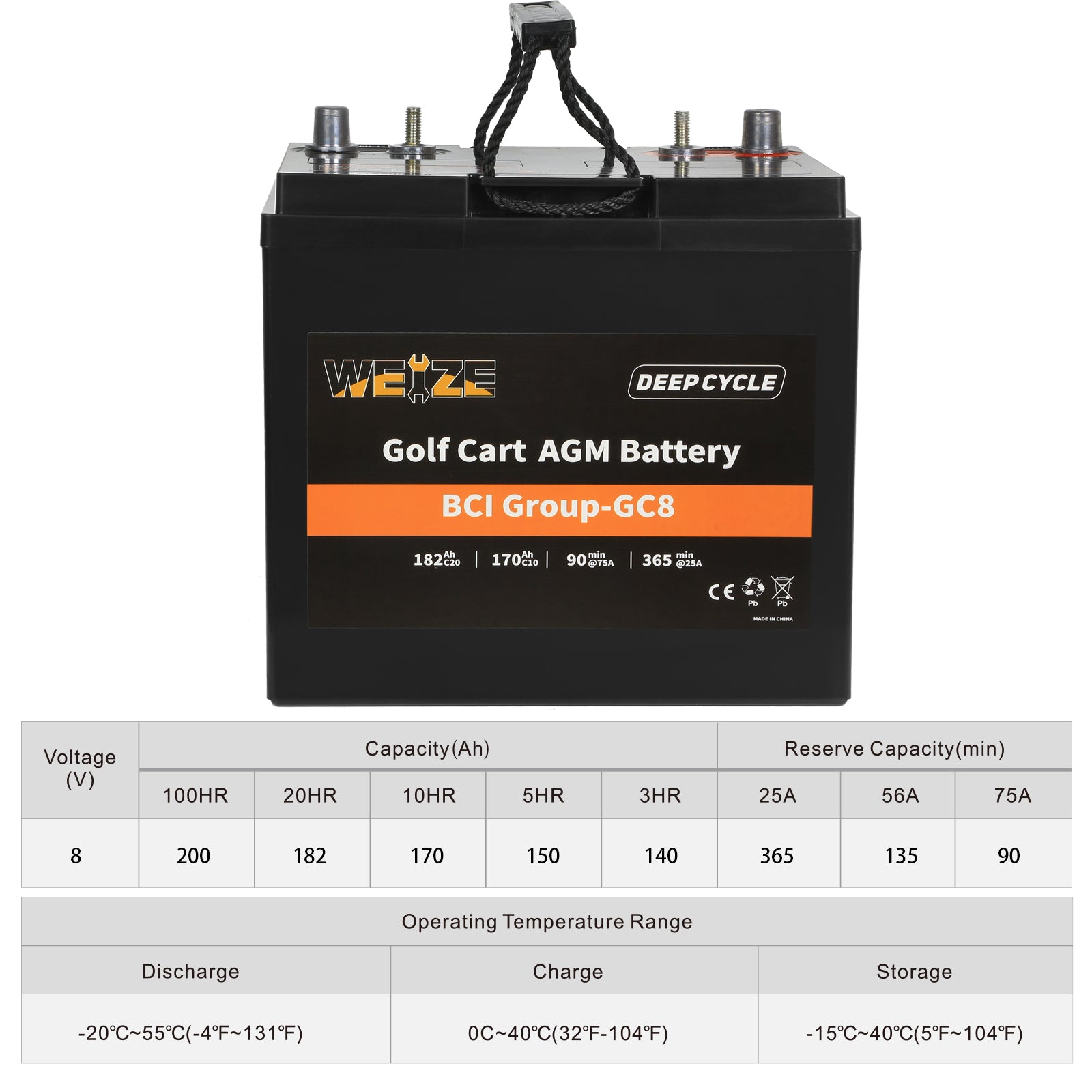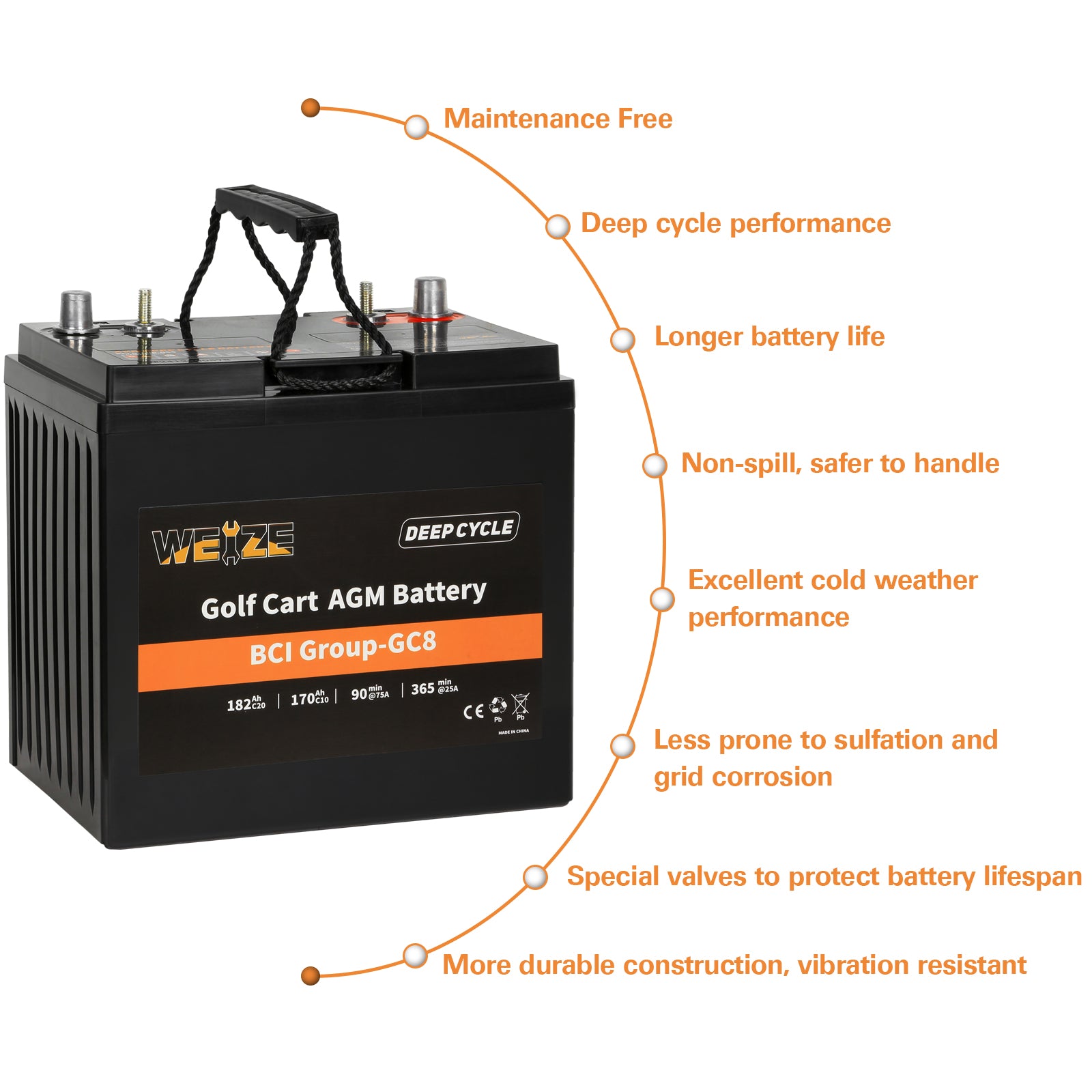 WEIZE 8V 182AH BCI Group GC8 AGM Golf Cart Battery