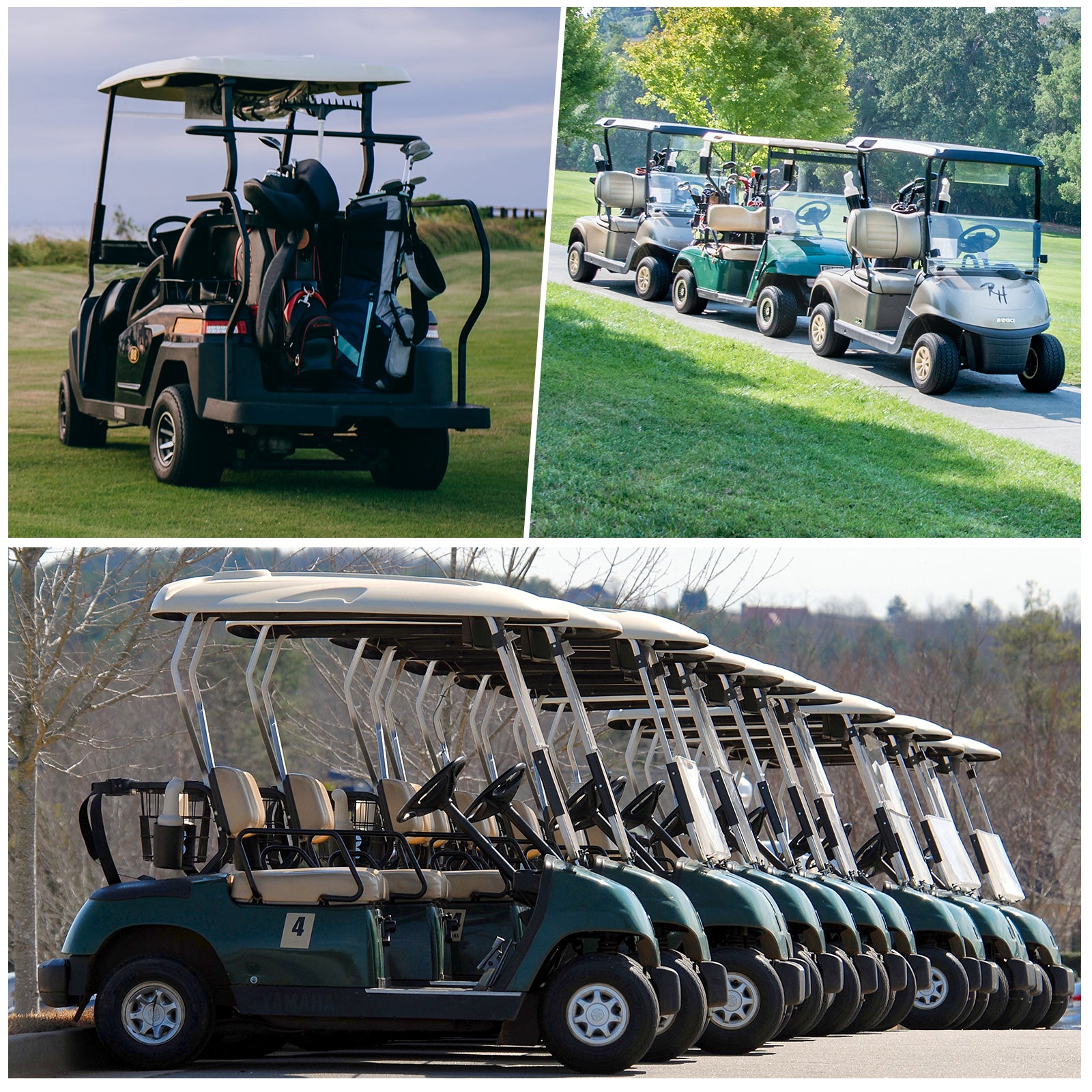 An electric golf cart typically has 4, 6, or 8 batteries and operates on either a 36-volt or 48-volt electrical drive system.