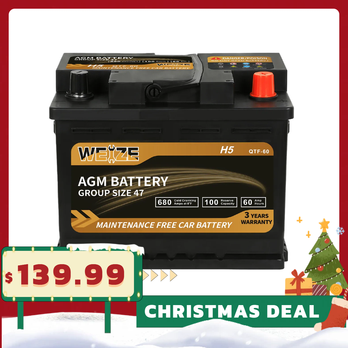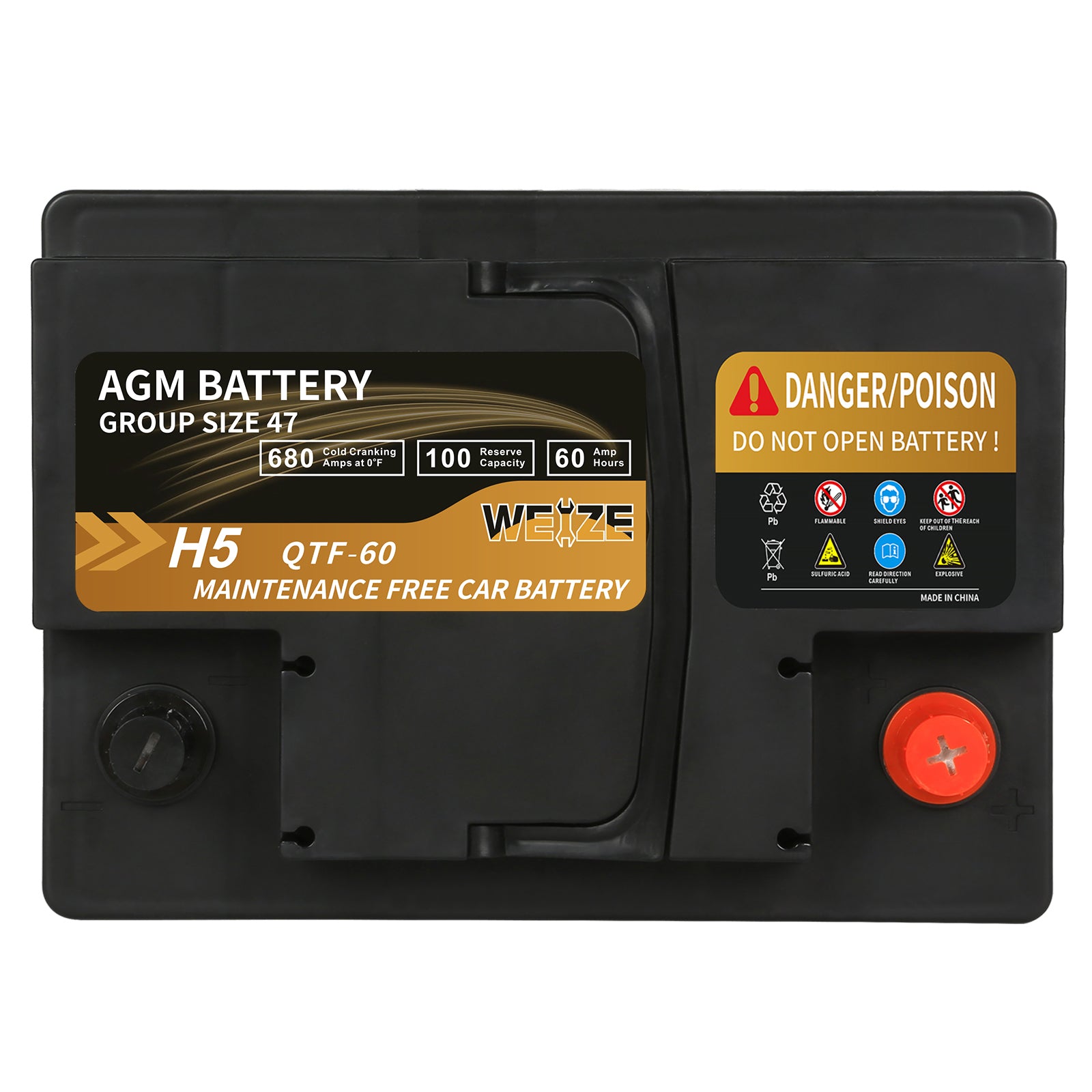 WEIZE Wise Series Group 47 AGM Car Battery - 12V 60Ah H5 Automotive Replacement Battery