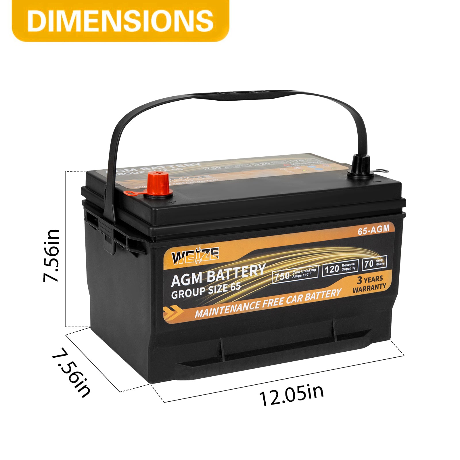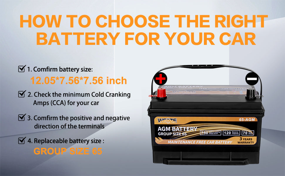 WEIZE Platinum AGM Car Battery BCI Group 65