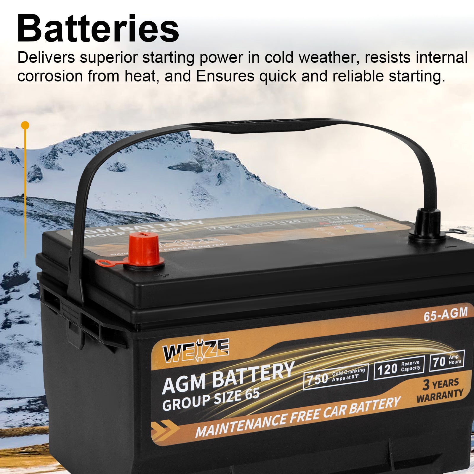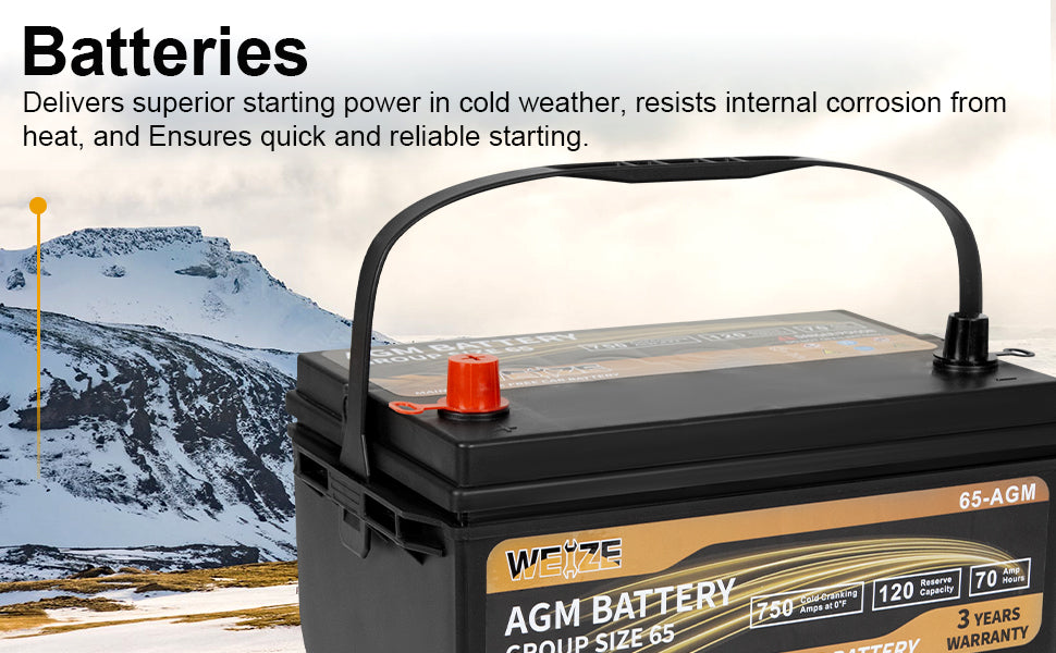 Weize Platinum AGM Battery BCI Group 65 Automotive Battery, 12V 70ah, 120RC, 750CCA, 36 Months Warranty, Replacement for Car, SUV