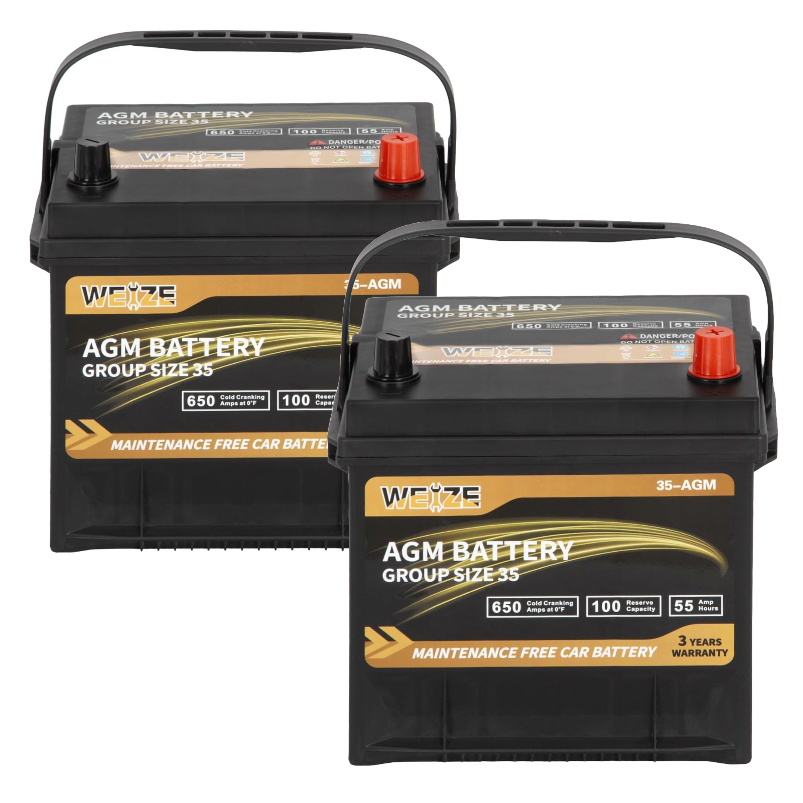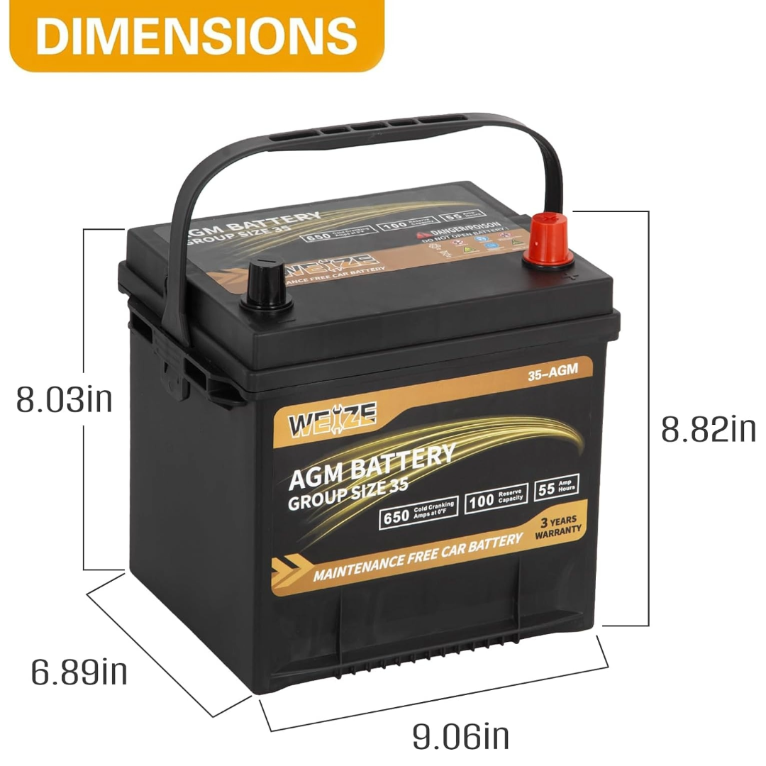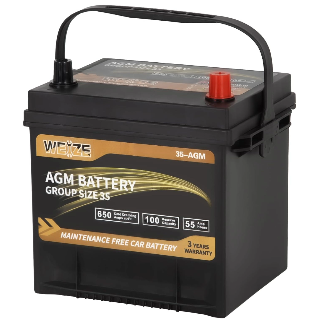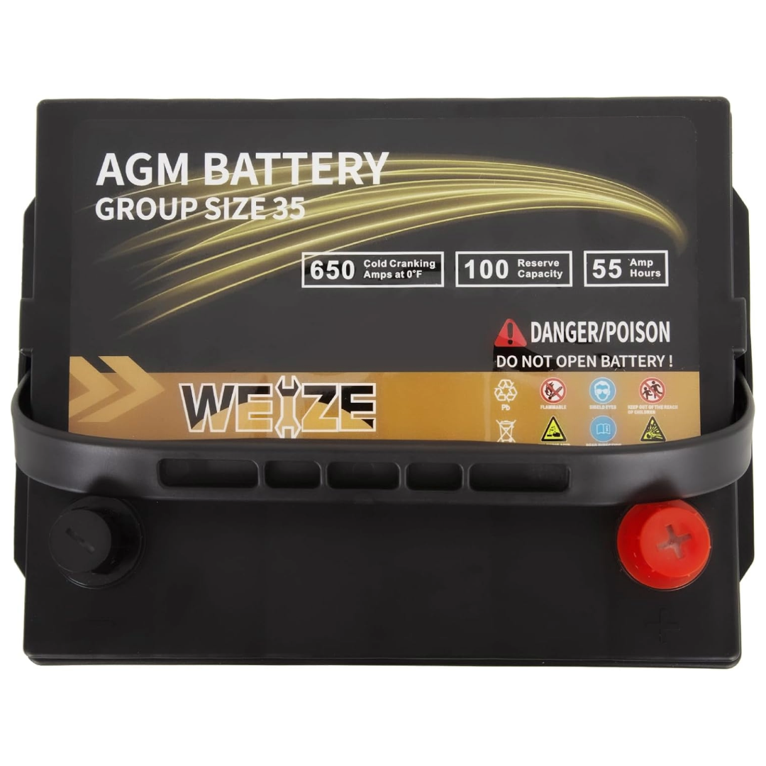 WEIZE Wise Series Group 35 AGM Car Battery - 12V 55Ah 650CCA Automotive Replacement Battery