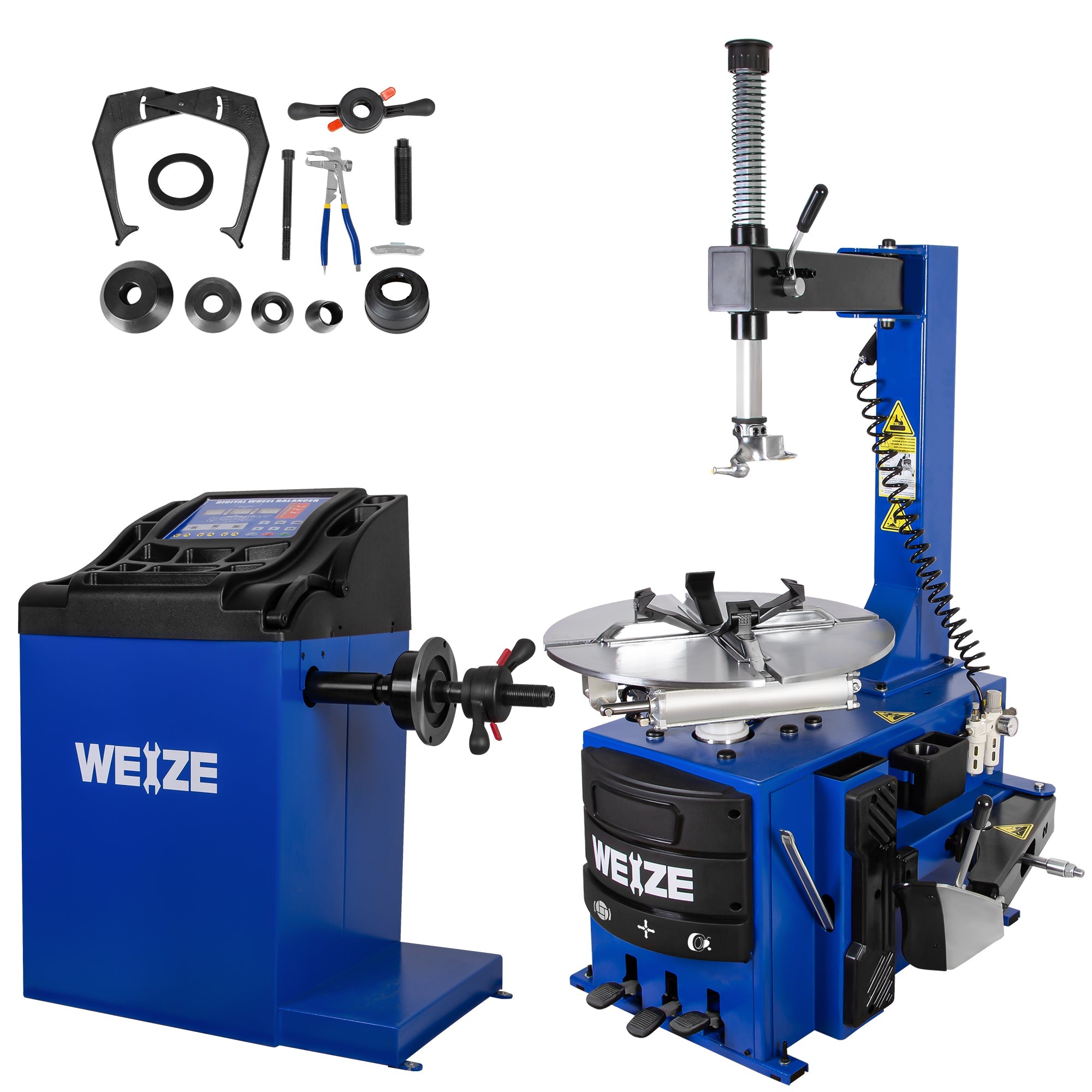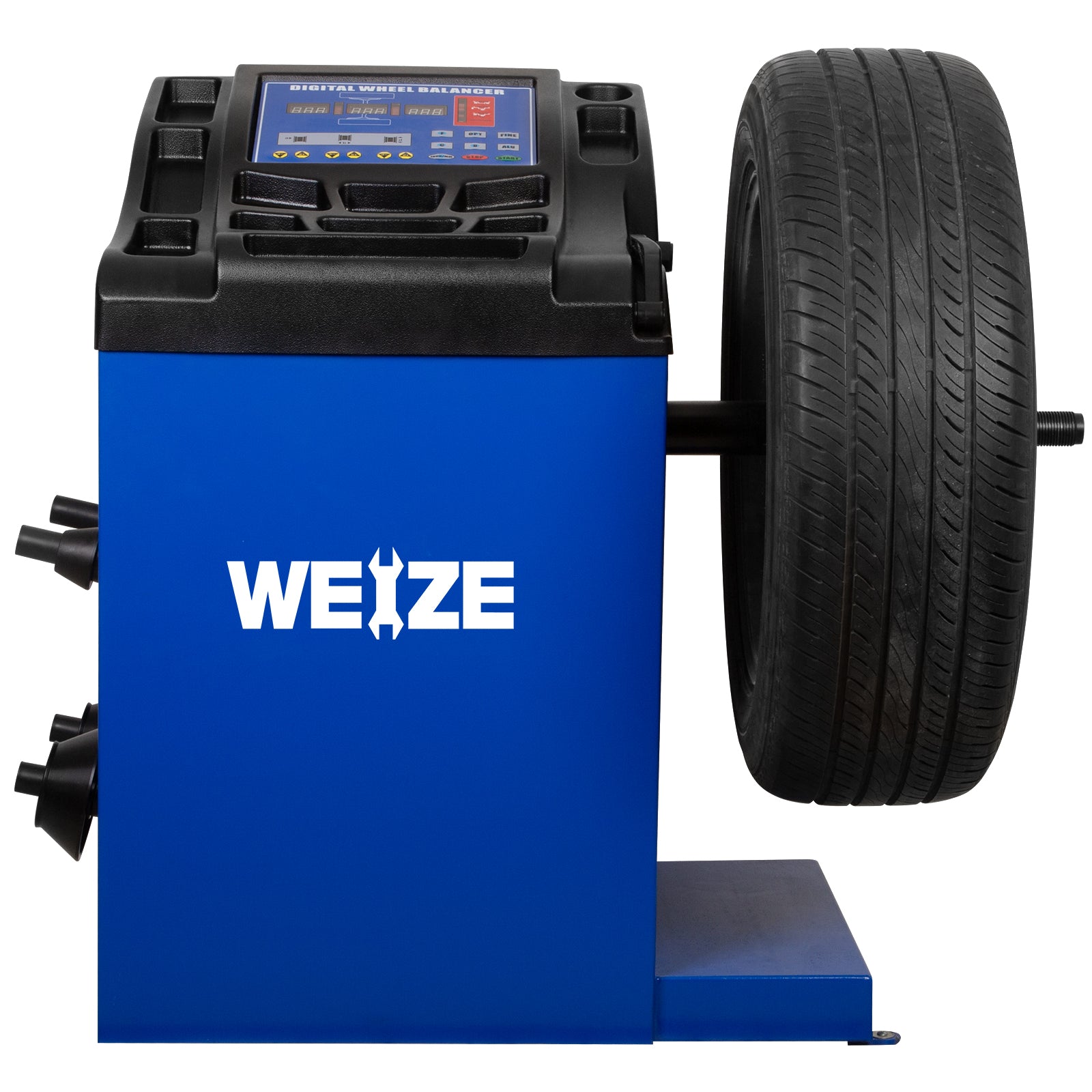 Designed for versatility and ease of use, the WEIZE Wheel Balancer includes multi-size cones and a Quick Nut cup adapter to accommodate a wide range of passenger vehicle wheels. These components allow for fast, secure mounting while ensuring perfect wheel centering every time.