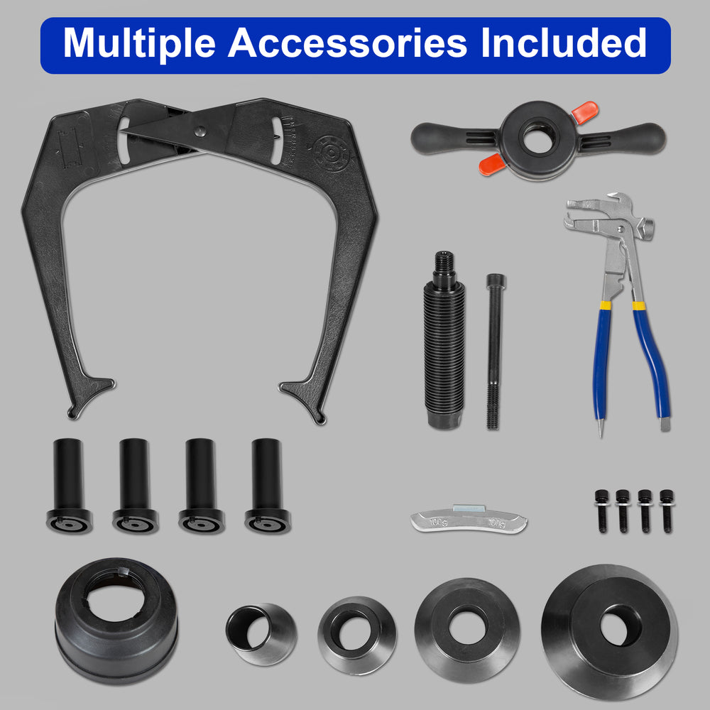 The WEIZE Wheel Balancer is packed with a comprehensive set of accessories, providing everything you need for efficient, accurate wheel balancing right out of the box. Each item is selected to ensure ease of use, versatility, and professional-level performance. Included with the machine: Quick nut, Hammer plier, 100g calibration weight, Four cones, Width caliper, Pressure cup, Lead block rod, and screws.