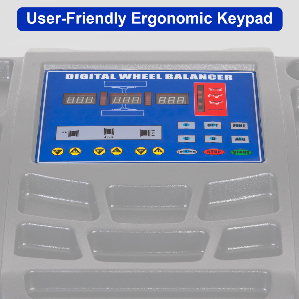 The WEIZE Wheel Balancer features an ergonomically designed control keypad paired with a bright, easy-to-read LED display, making operation smooth, accurate, and efficient. The thoughtfully arranged keypad minimizes hand fatigue and maximizes workflow efficiency during repeated use.