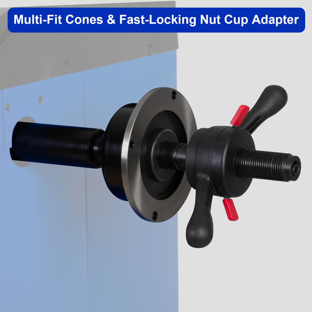 The Quick Nut features a quick-release mechanism that significantly reduces setup time, improving workflow efficiency in busy shops or mobile operations. Together with the precision-fit cones, this setup helps prevent wheel damage during installation and provides a tight, stable hold for accurate balancing.