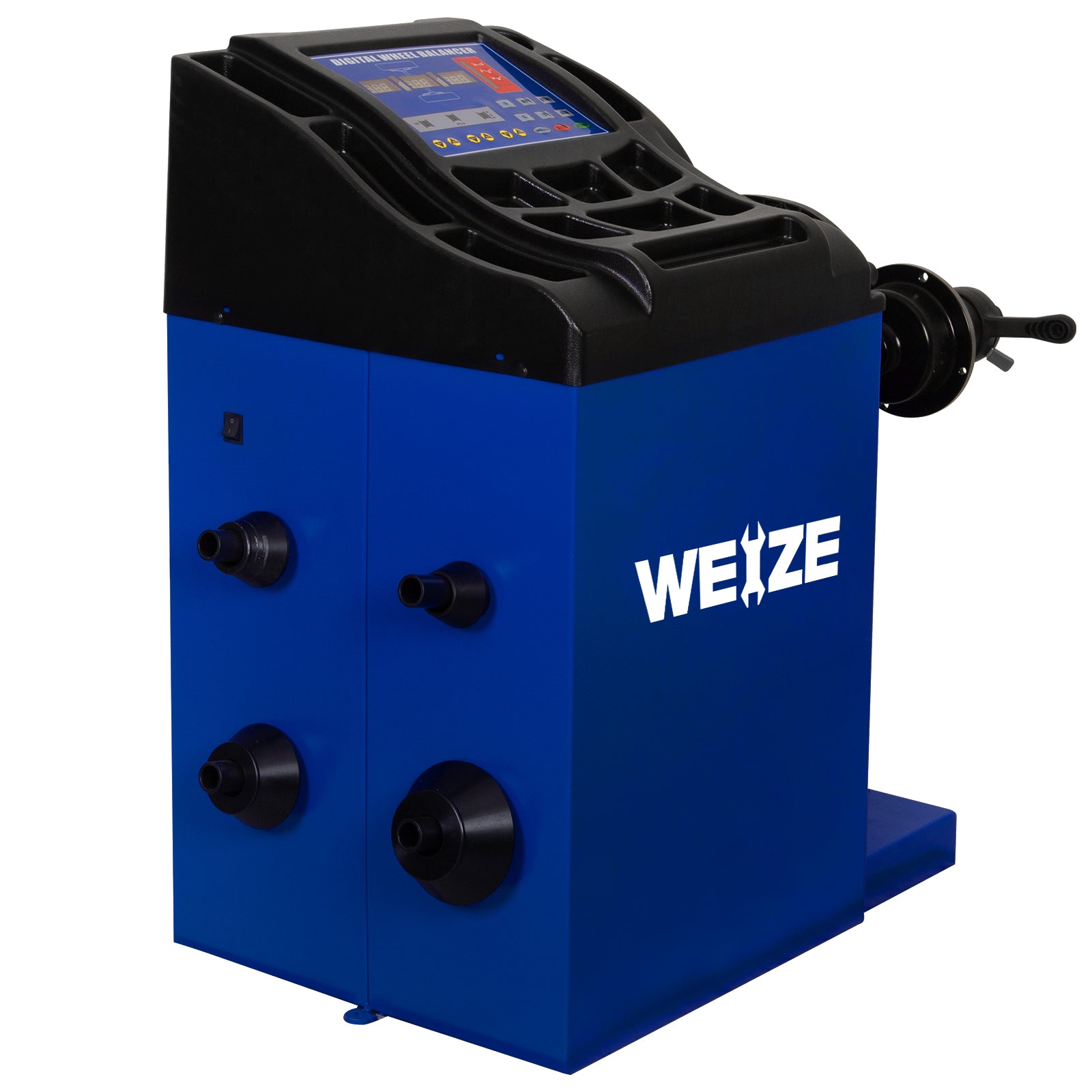 Built for both performance and practicality, the WEIZE Wheel Balancer features a sturdy, extended base that enhances stability—especially when working with larger or heavier wheels. The modern and functional design not only supports the machine’s internal components securely but also minimizes vibrations during operation for more accurate results.