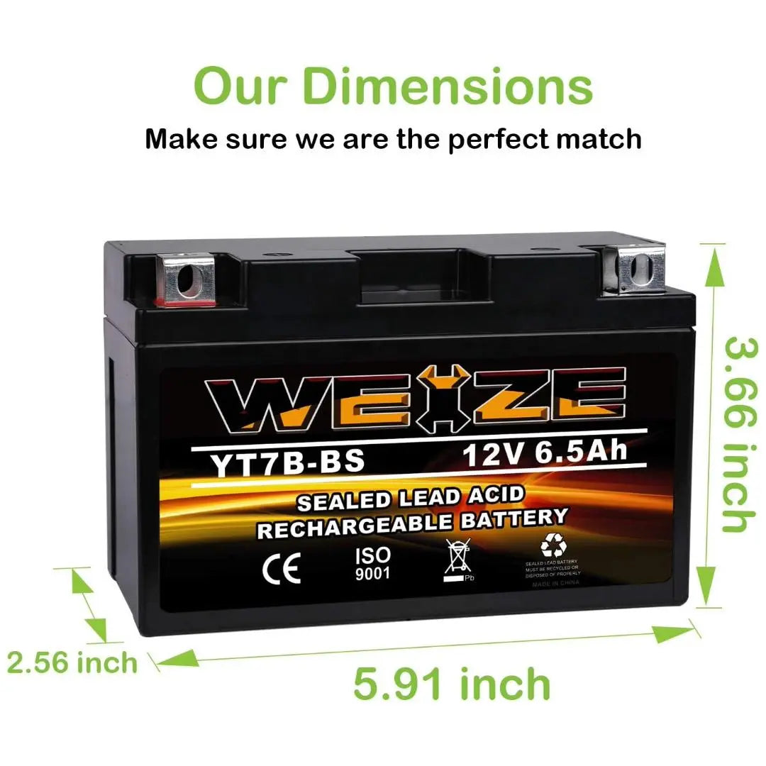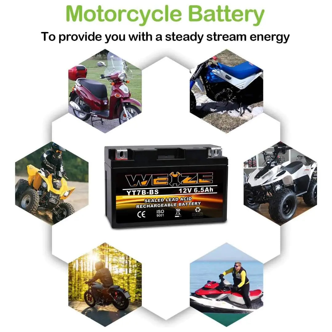 WEIZE YT7B-BS 12V 6.5Ah High Performance - Maintenance Free - Sealed AGM Motorcycle Battery YT7B BS For Yamaha ATV