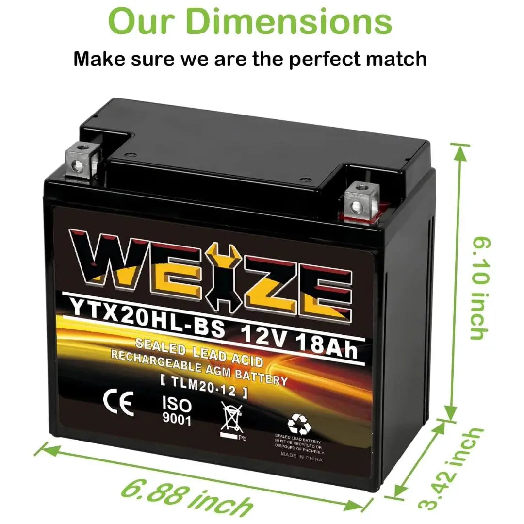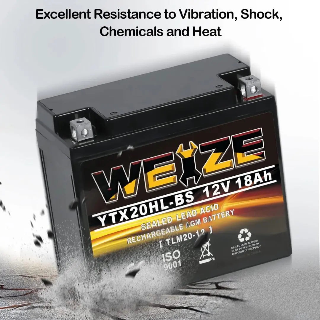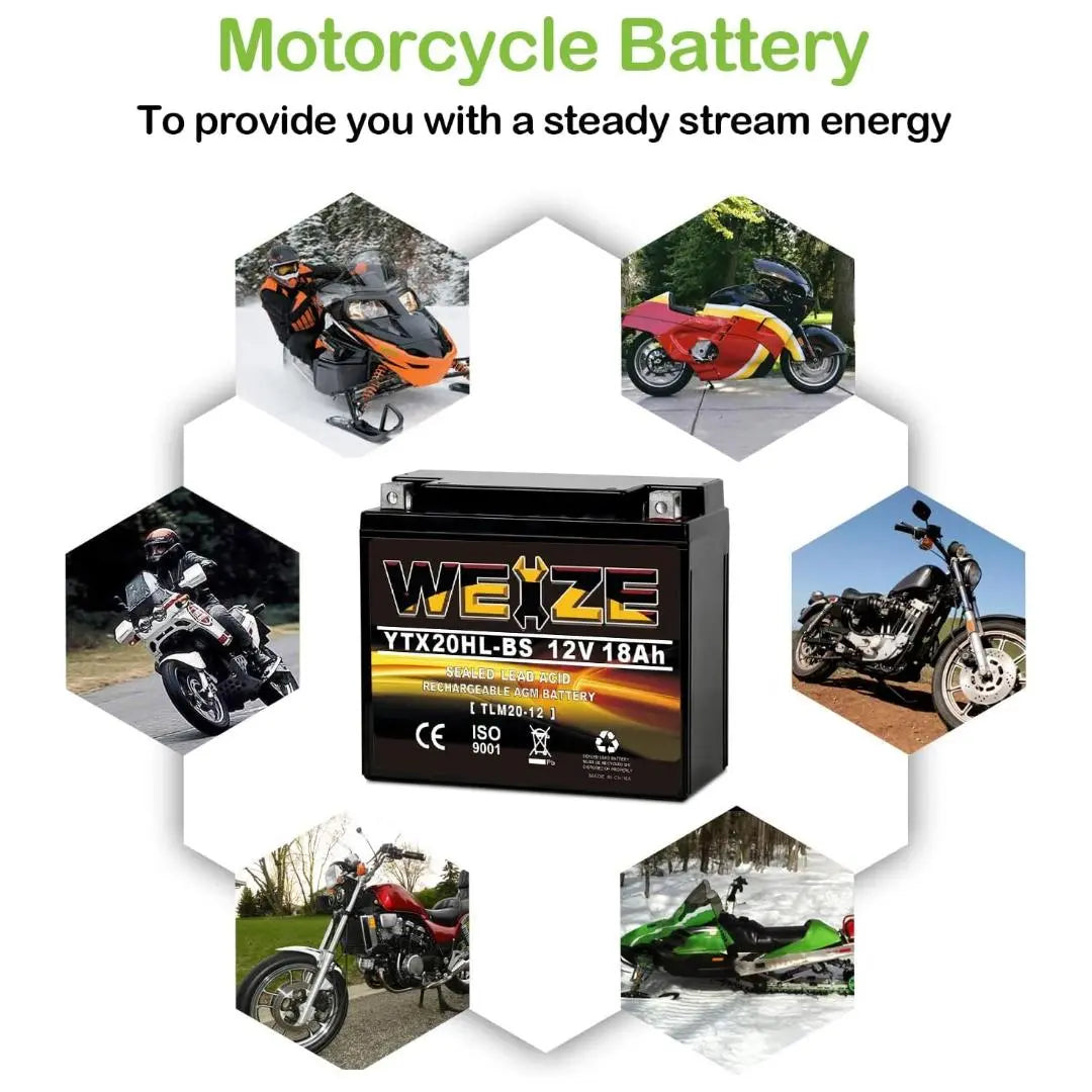 WEIZE YTX20HL-BS 12V 18Ah High Performance-Maintenance Free-Sealed AGM ETX20HL BS Motorcycle Battery